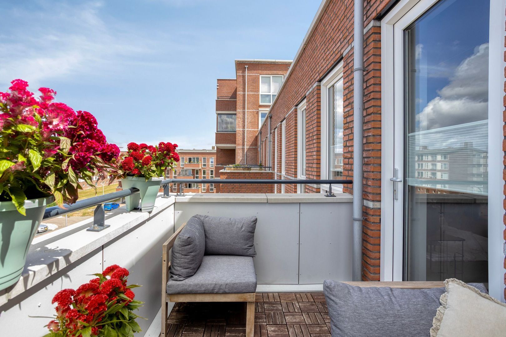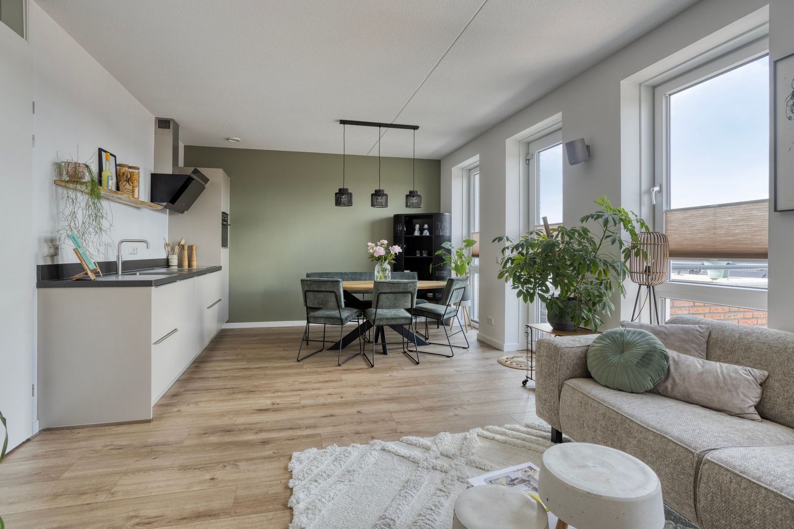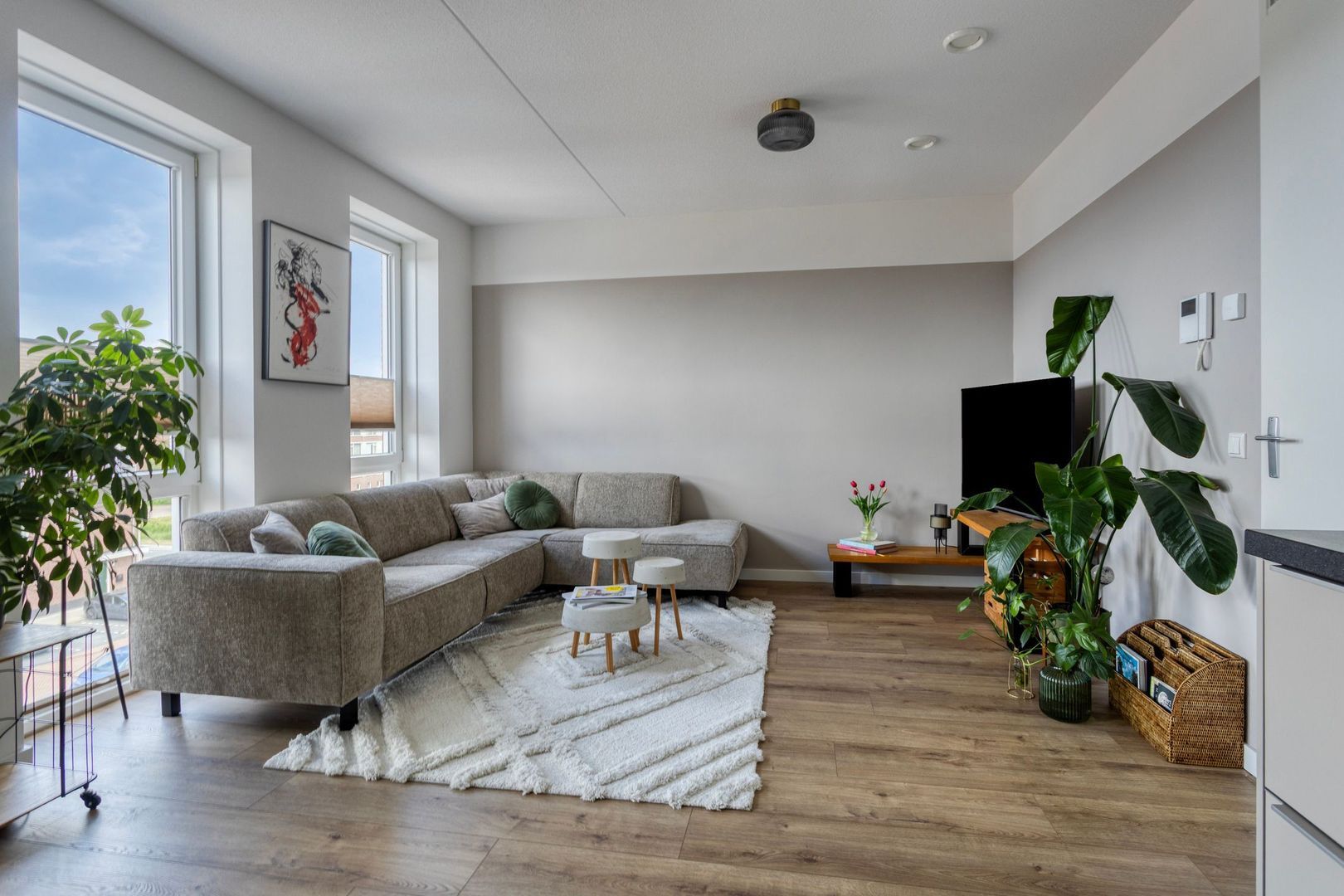 De lichte en sfeervolle woonkamer biedt toegang tot het balkon, gelegen op het noordwesten waar je heerlijk van de middag- en avondzon kunt genieten. De open keuken is uitgerust met een composiet werkblad en diverse inbouwapparatuur: een inductiekookplaat met recirculatiekap, combi oven/magnetron, Quooker, koelkast en vaatwasmachine.