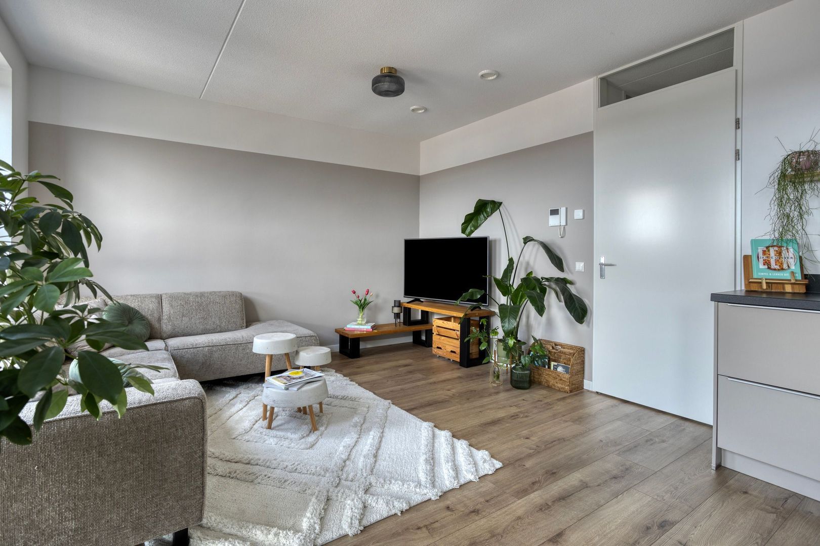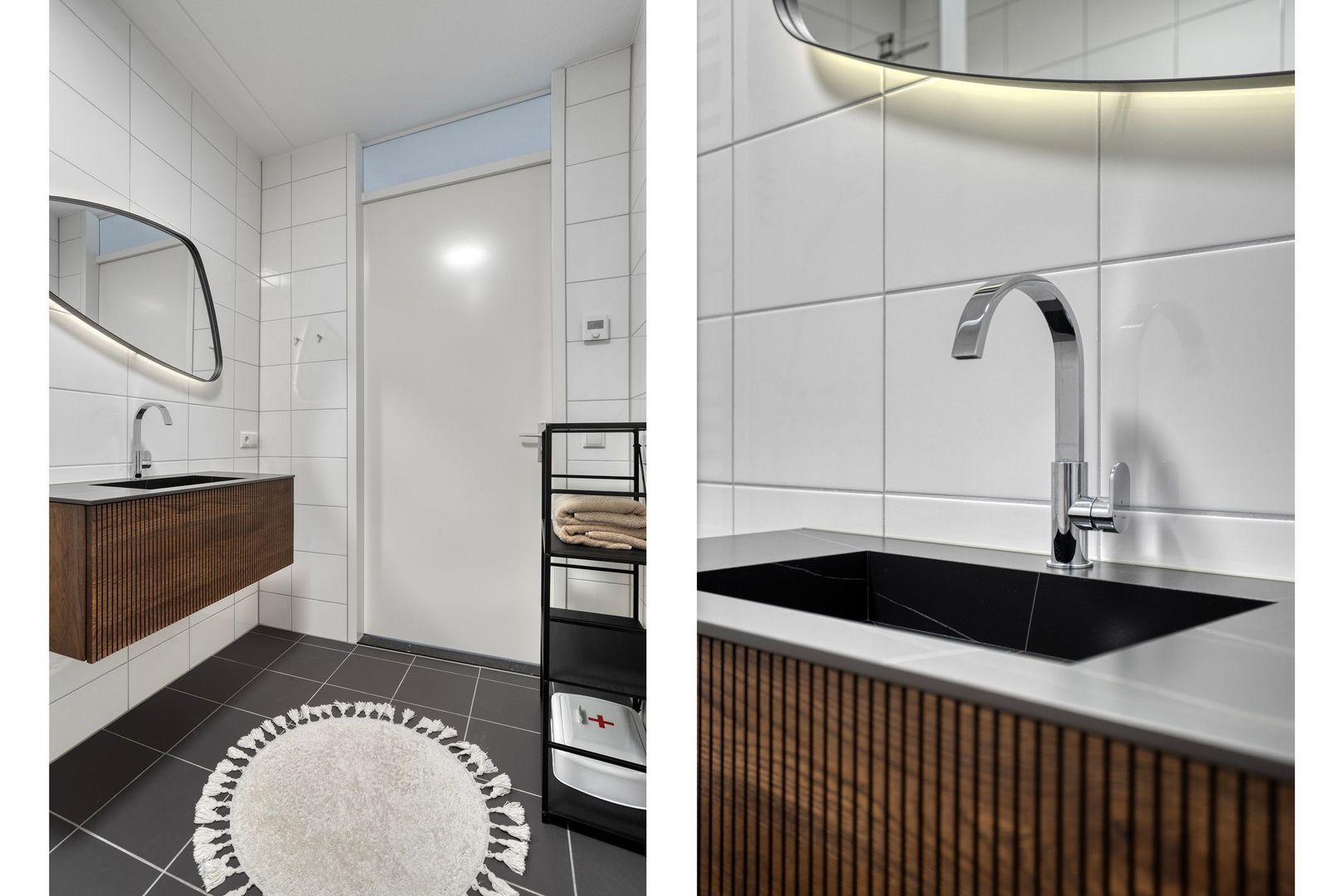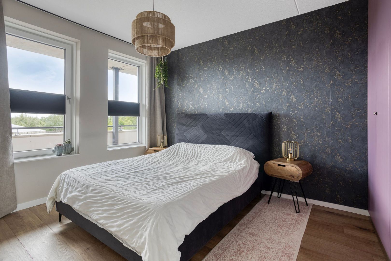 De lichte en sfeervolle woonkamer biedt toegang tot het balkon, gelegen op het noordwesten waar je heerlijk van de middag- en avondzon kunt genieten. De open keuken is uitgerust met een composiet werkblad en diverse inbouwapparatuur: een inductiekookplaat met recirculatiekap, combi oven/magnetron, Quooker, koelkast en vaatwasmachine.