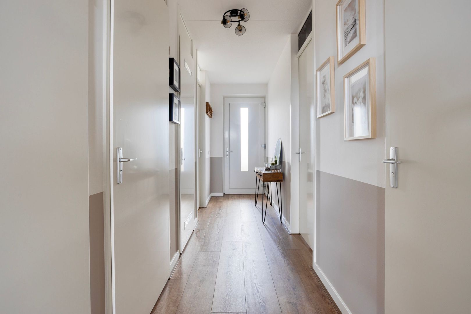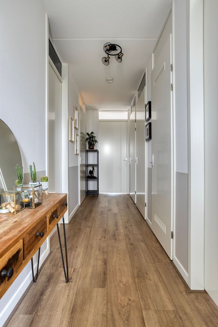 Entree met hal met toegang tot de slaapkamers, de badkamer, het toilet, meterkast en technische ruimte. De woning is voorzien van een doorlopende laminaatvloer en vloerverwarming/-koeling. Aan de linkerzijde bevindt zich de hoofdslaapkamer met vaste kasten. Tegenover de hoofdslaapkamer ligt de tweede slaapkamer, ideaal als logeer-, werk- of hobbykamer.
